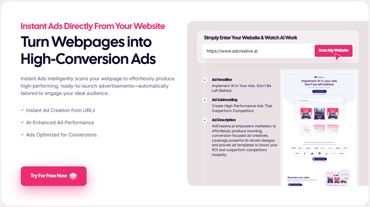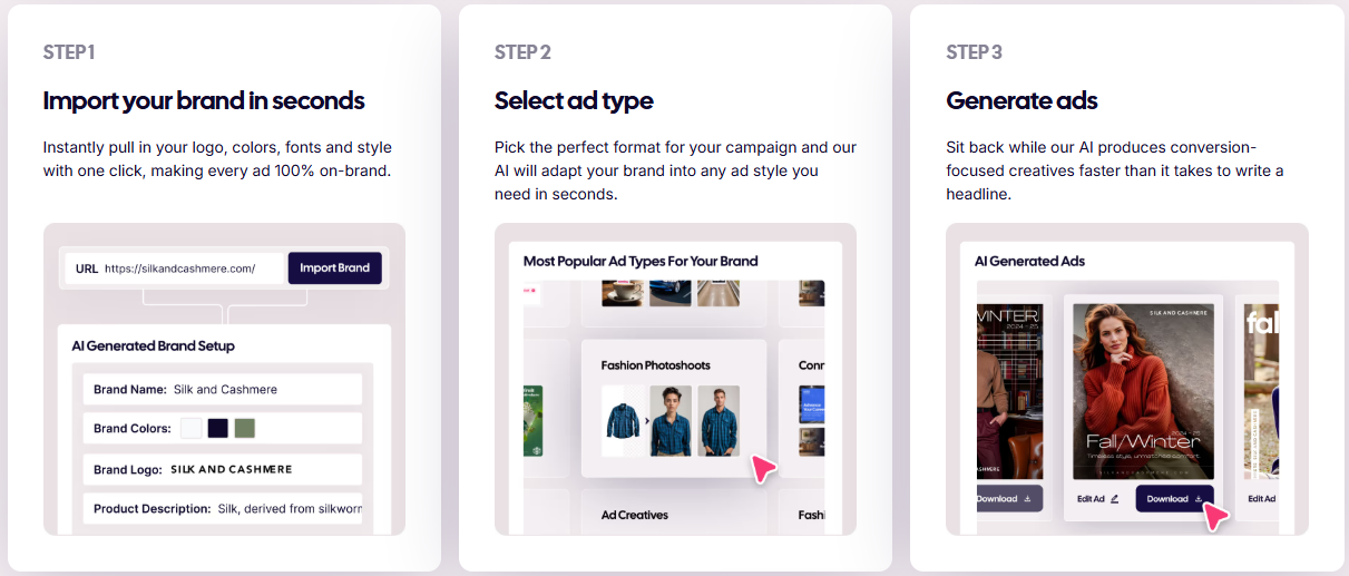 | Instant ad creation directly from website URLs | Not ideal for cinematic or high-end video ads |