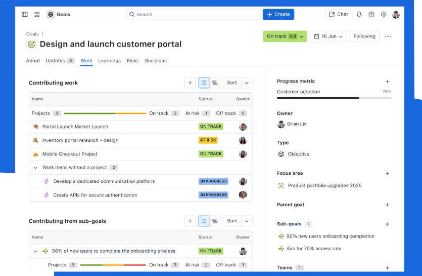 It connects team members, projects, and resources in one centralized workspace, making it easier to manage complex workflows and stay aligned with company goals.