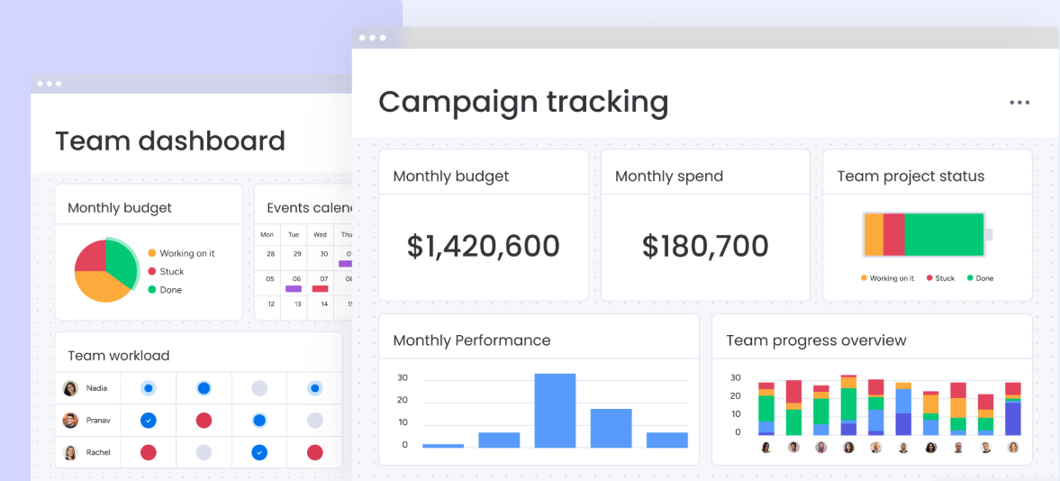 - Built for Scale and Security: Monday.com supports businesses of all sizes with enterprise-level features, including detailed reporting, role-based access, and compliance with GDPR, HIPAA, and SOC2 standards.