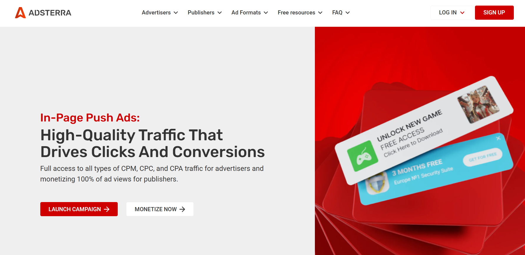 Adsterra is a global digital advertising network that connects advertisers with high-quality traffic and helps publishers monetize their websites effectively.