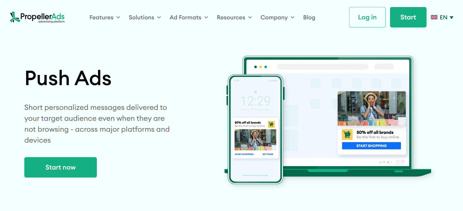 - PropellerAds’ push ad pricing is performance-based, designed to pay only for results.
