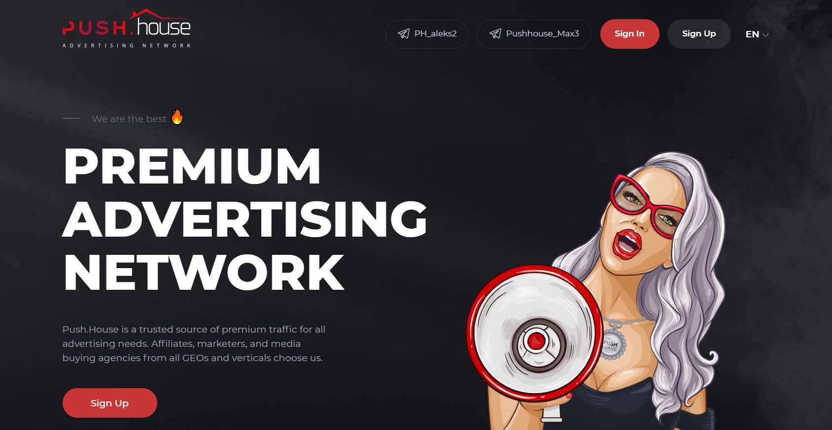 Push.House is a premium advertising network that specializes in high-quality traffic for advertisers, affiliates, and media buying agencies across multiple GEOs and verticals.