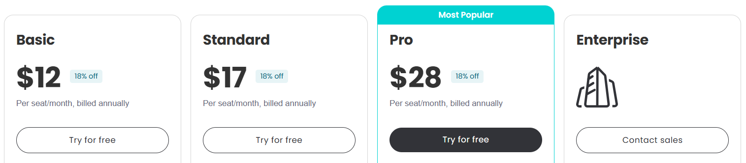 - Basic ($12/seat/month billed annually)