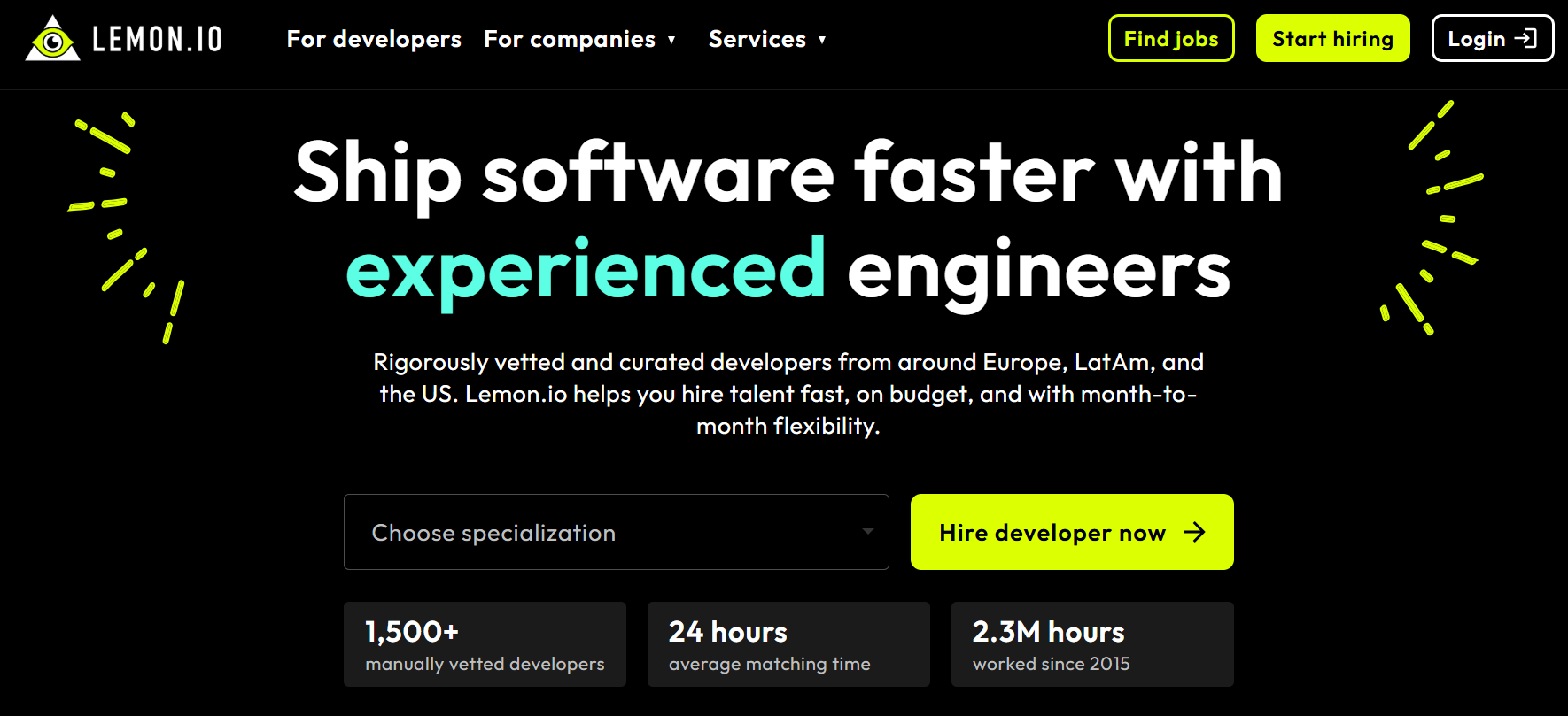 Lemon.io is a freelance marketplace that connects companies with rigorously vetted software developers from Europe, LatAm, and the US.