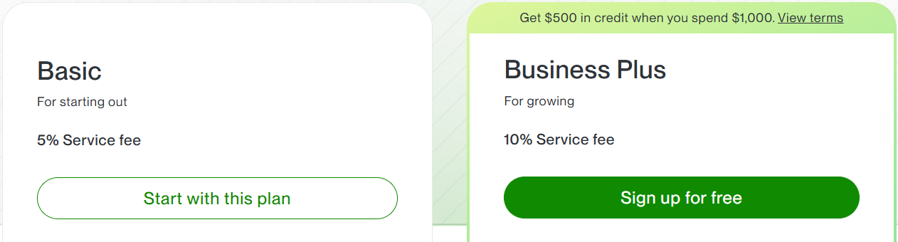 - Upwork Business Plus Plan: Designed for growing teams, the Business Plus plan provides instant access to pre-vetted top 1% talent, advanced reporting, team controls, and priority support. It charges a 10% service fee and supports pay-later options for eligible businesses.