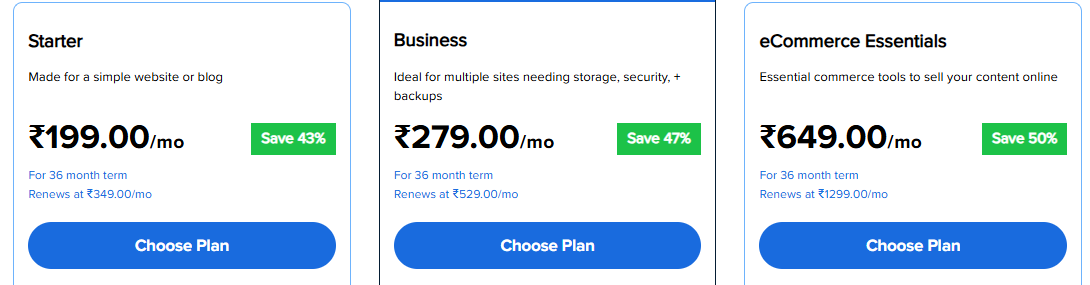 - Starter – ₹199/month (renews at ₹349/month)