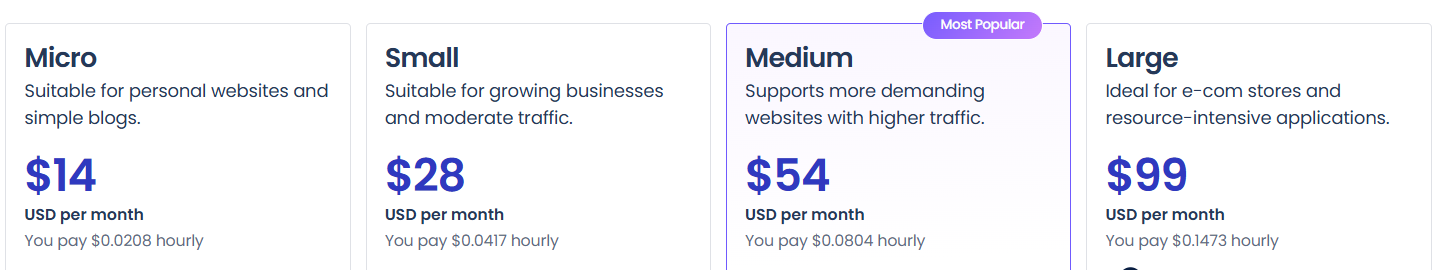 - Medium (Most Popular) – $54/month (≈ $0.0804 hourly)