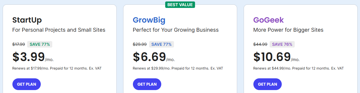 - GoGeek – $10.69/month (renews at $44.99/month)