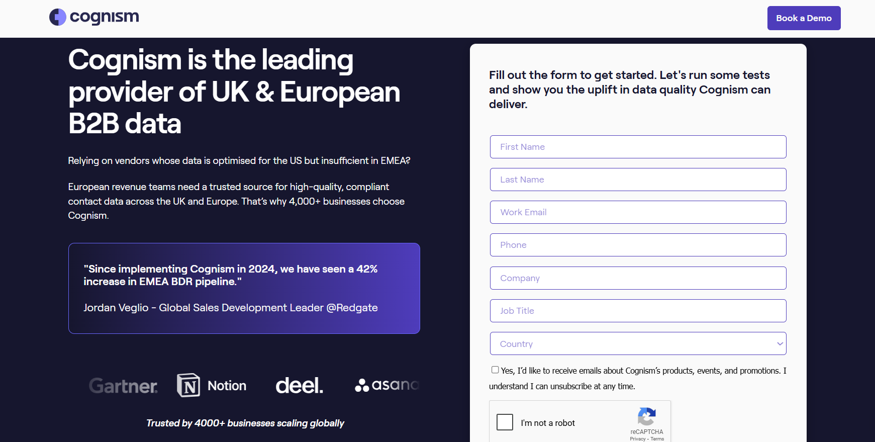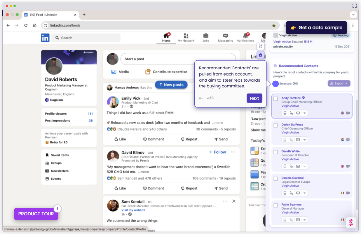 Cognism helps sales and marketing teams find accurate decision-maker contacts, especially VP-level and C-suite buyers across the UK and Europe.