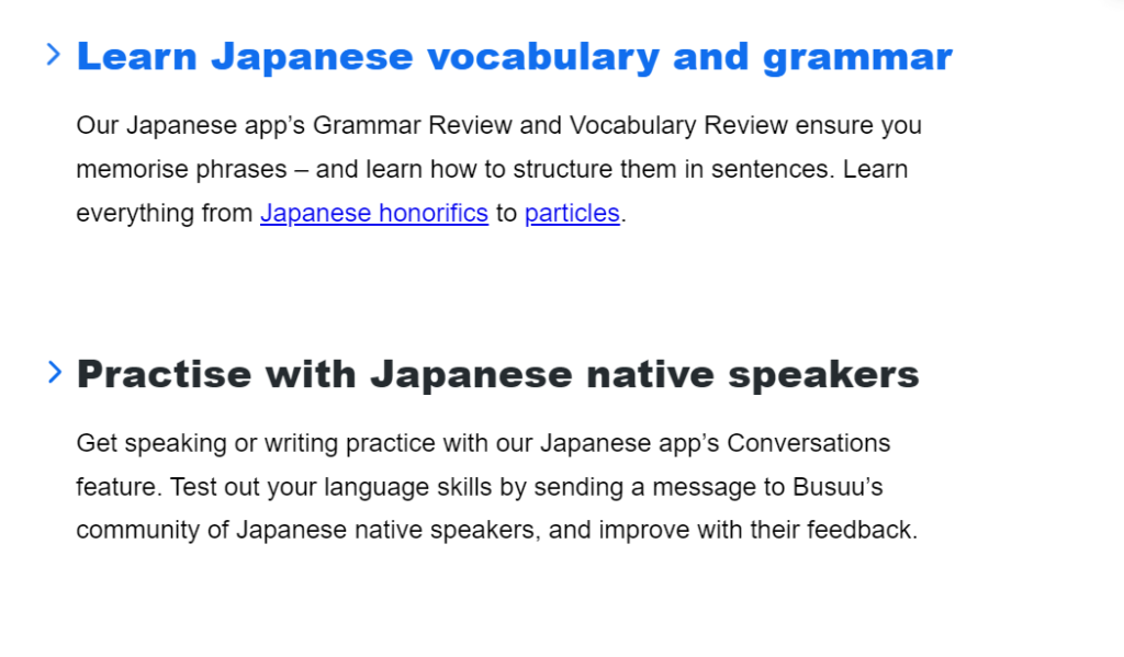 Features of Busuu Japanese Language Course
