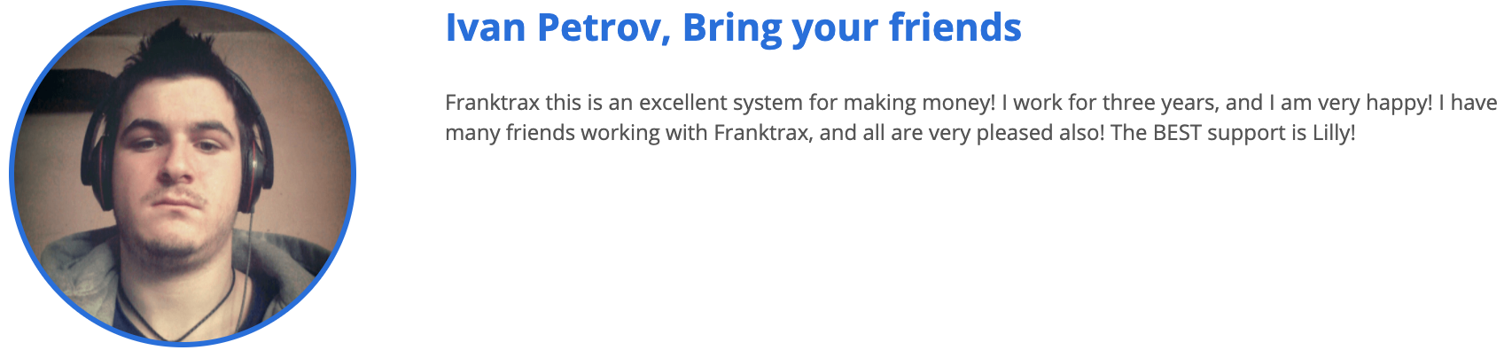 Franktrax is one of the highly used and reliable platforms in recent times that allow us to make money from simple traffic from online platforms for socialization. It has certain norms and ethics like on-time payments, good converting rates, tempting offers, and many more. People associated with Franktrax over the last few years have been highly satisfied and are currently making a lot of money. The experience with the management team is smooth and highly appreciated.