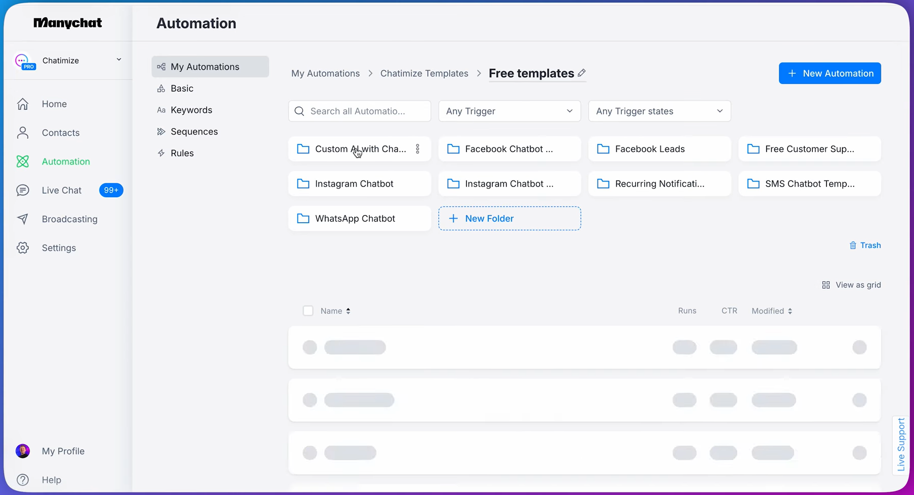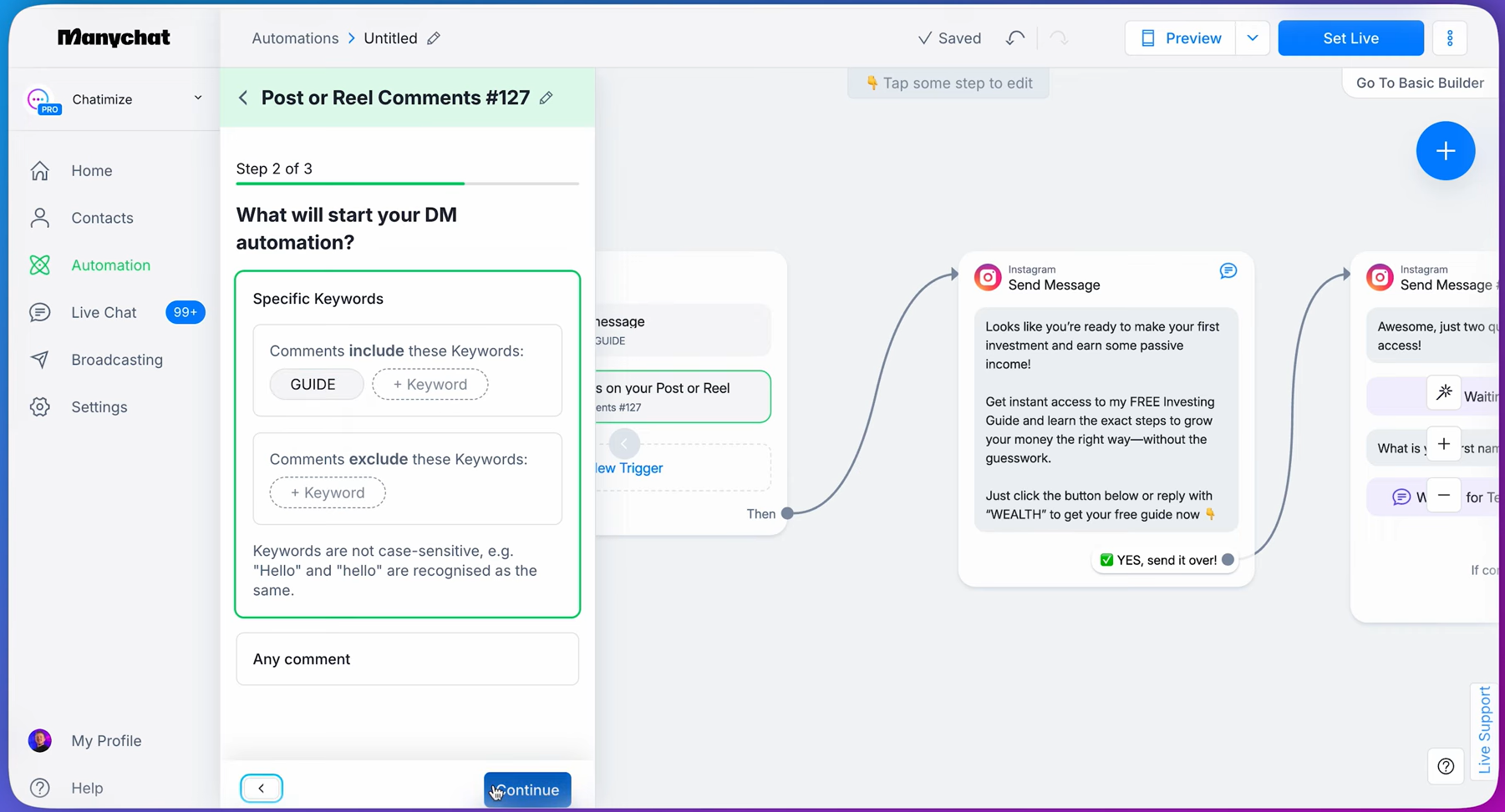 Manychat lets you create custom automated flows without coding. You can build funnels for sales, lead nurturing, or customer support.