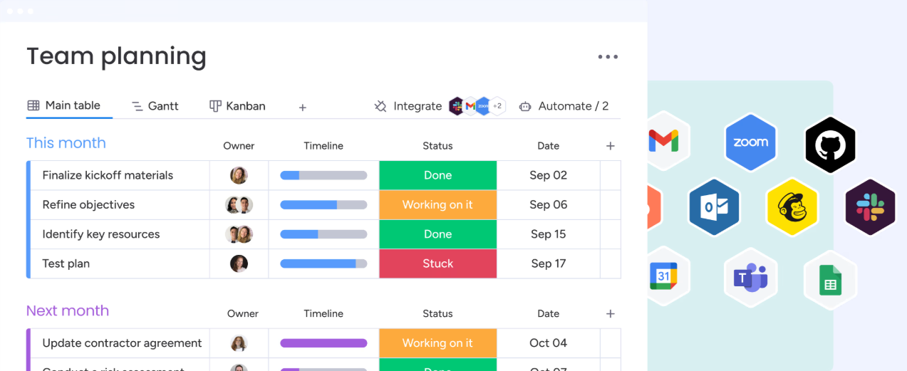 - Visual Planning Tools: Gantt charts, calendars, kanban boards, and dashboards for visual organization.