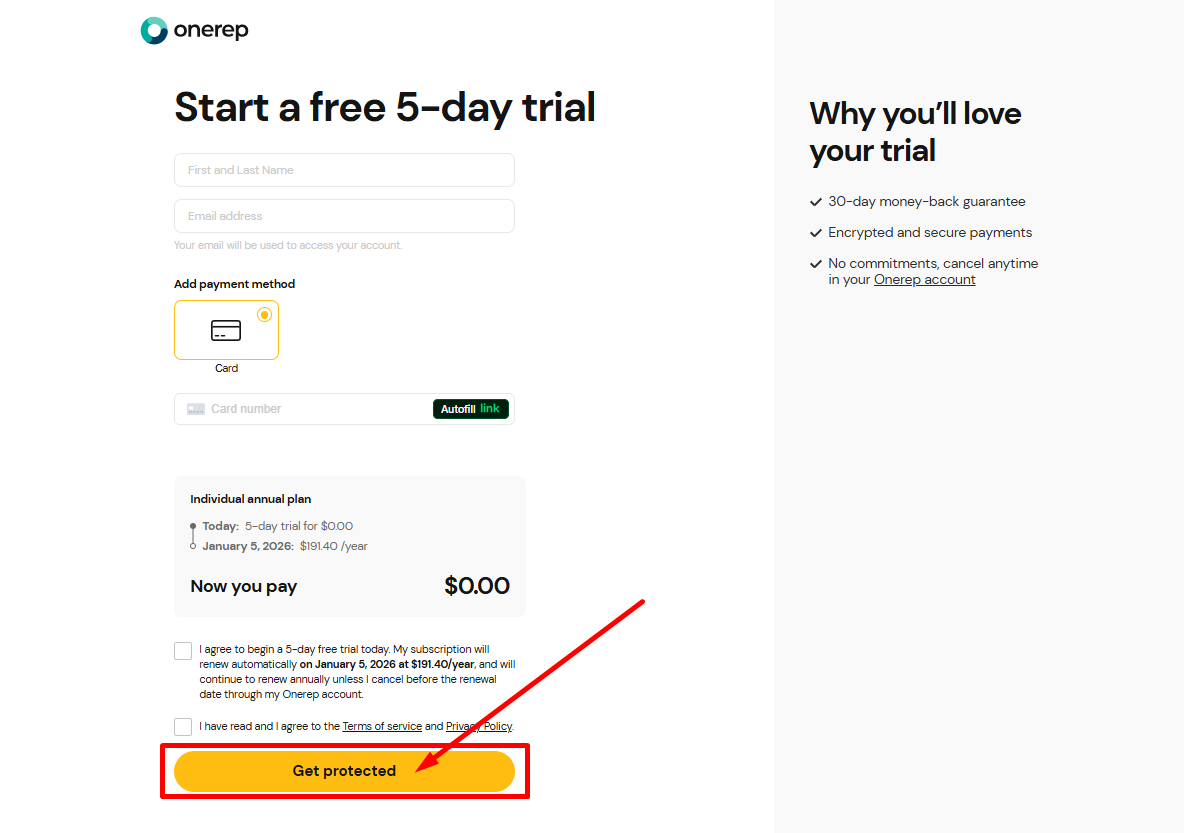 OneRep offers a free trial period for five days and from this, you can analyze how this platform is helpful in protecting your privacy. Now, you can proceed to buy the plan to remove your personal or professional information regularly.