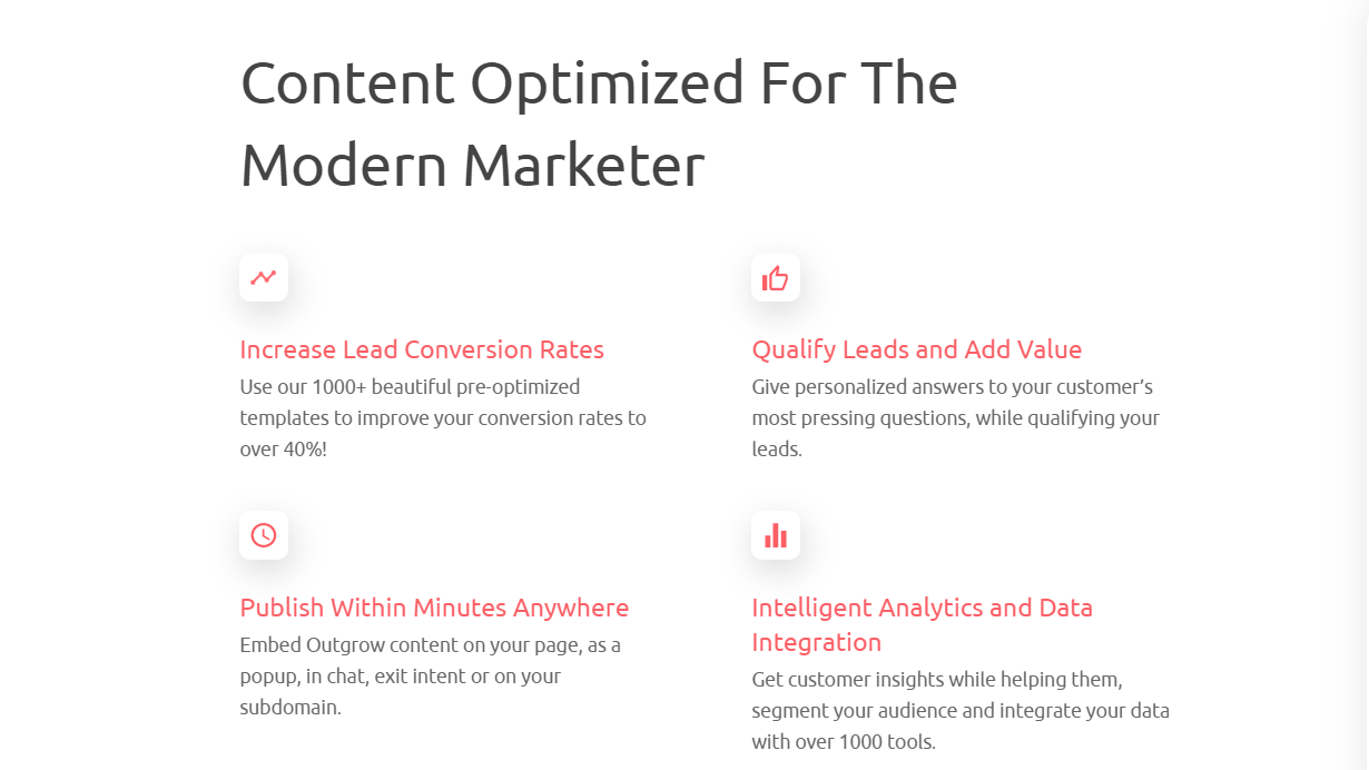 The platform offers tons of functionalities relevant to lead generation and site engagement. Let’s discuss the key aspects of Outgrow in a little detail.