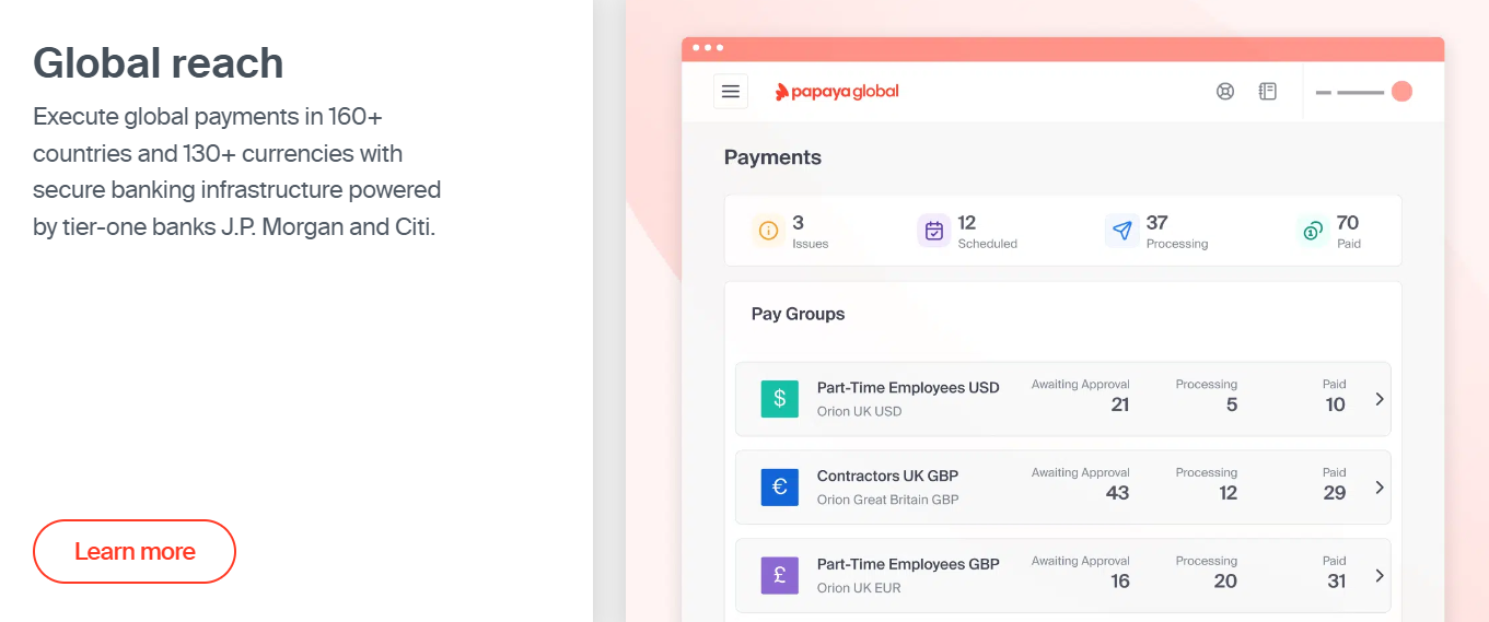 With payments processed in local currencies and supported by local compliance standards, Papaya makes cross-border payments seamless.