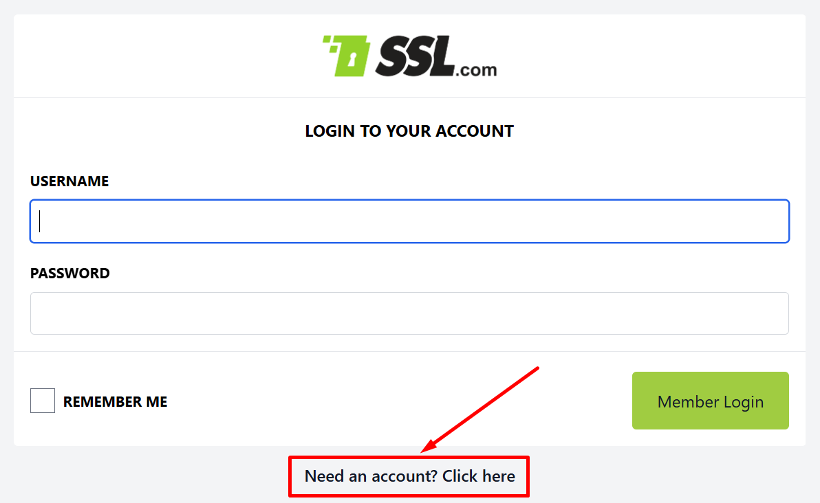 Step 2: Create your account by clicking on “Need an account? Click here.”