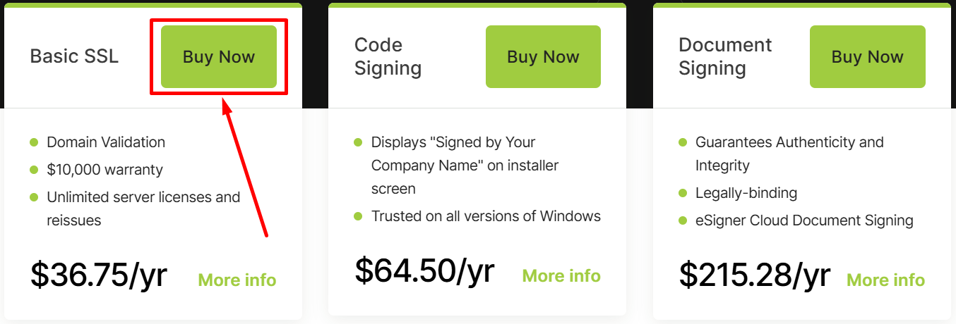 | Code Signing Certificate | $64.50/year | $25.80/year |