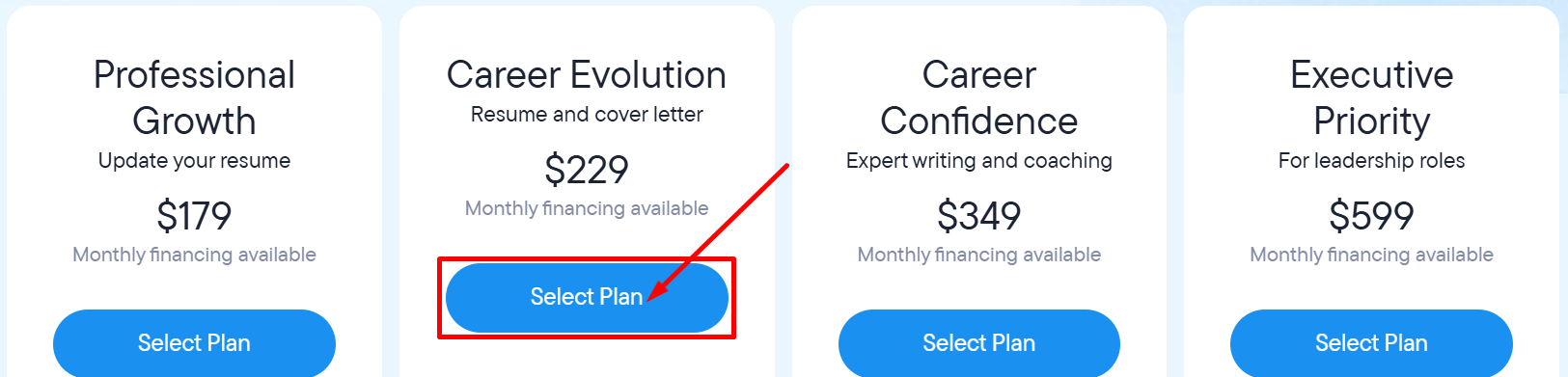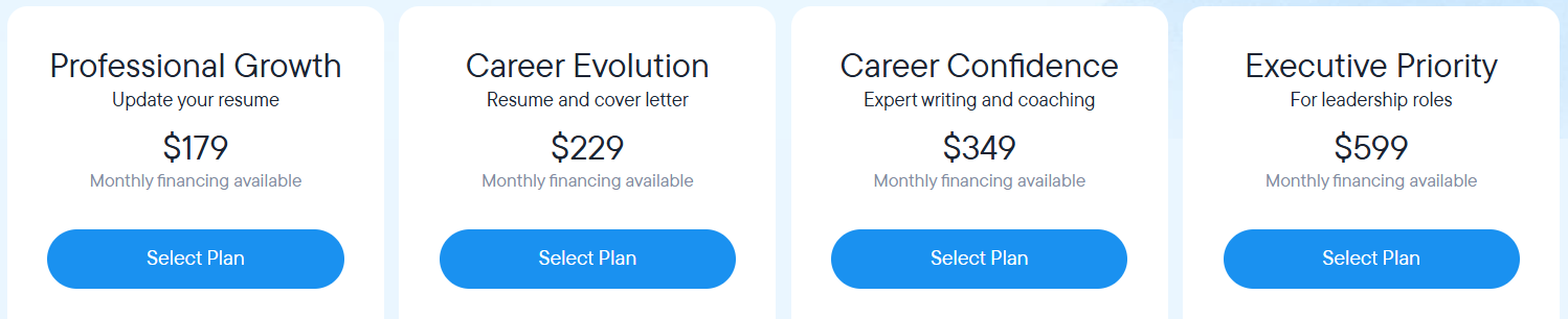 TopResume offers different pricing tiers depending on the level of support you need, from basic resume edits to full career packages.
