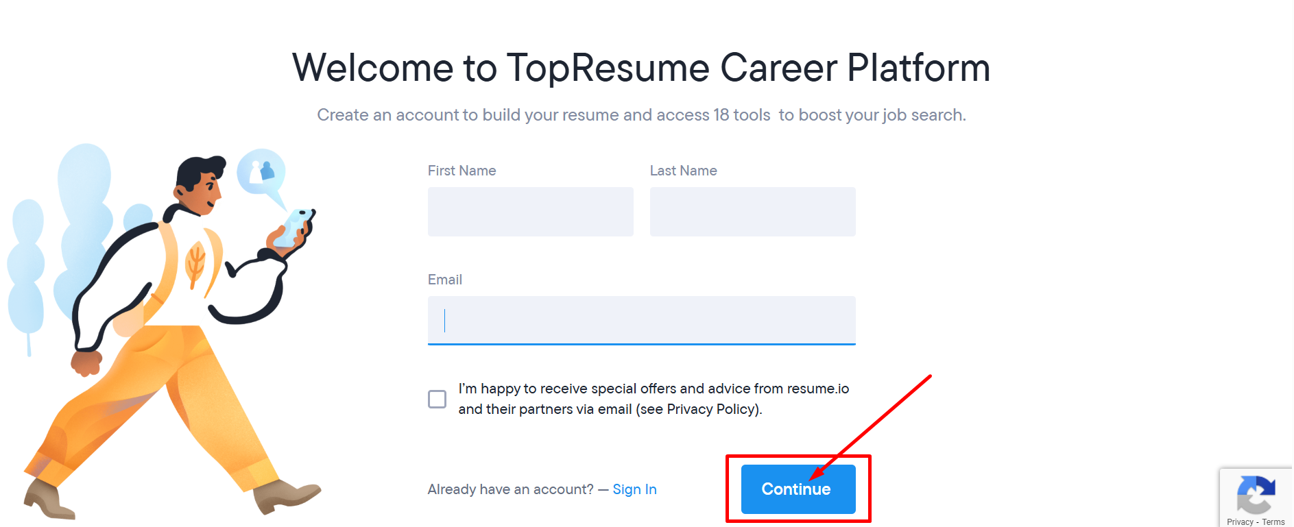 The platform offers a very easy and straightforward onboarding process that can be followed even by beginners. Follow the steps given below in order to register for the TopResume account.