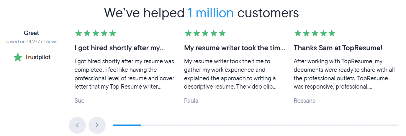 Starting with TopResume’s interface is super easy, offers free critique evaluation, professional and comprehensive customer support, a wide range of services as well as products offers coaching sessions, LinkedIn profile makeover, various service packages, and payment in installments, etc. 😊