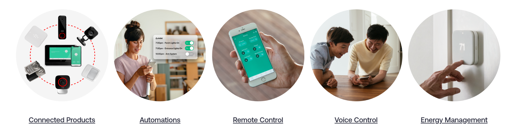 - Smart Home Integration – Control lights, locks, thermostat, garage door, and more – all from the Vivint app.