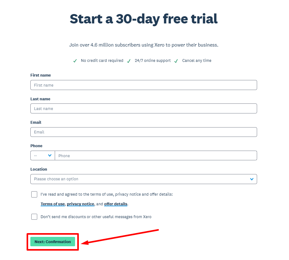 Step 2: Fill your details in the 30-day free trial form and click on “Confirmation“.